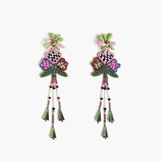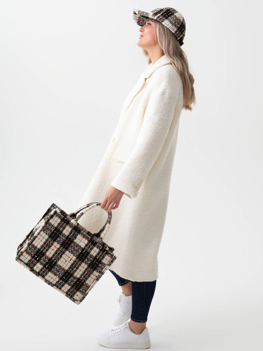 Bejeweled Tweed Tassel Pouch, Pale Pink