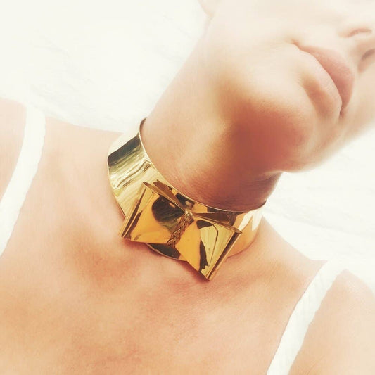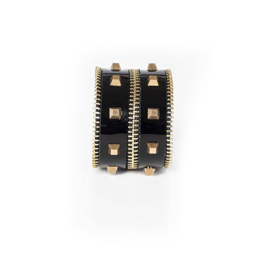 Brass Cuff Bracelet with Removable Black Leather Strap