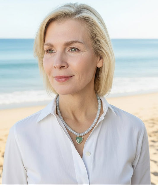 Blue Jade Beaded Necklace with Green Aventurine Heart Pendant