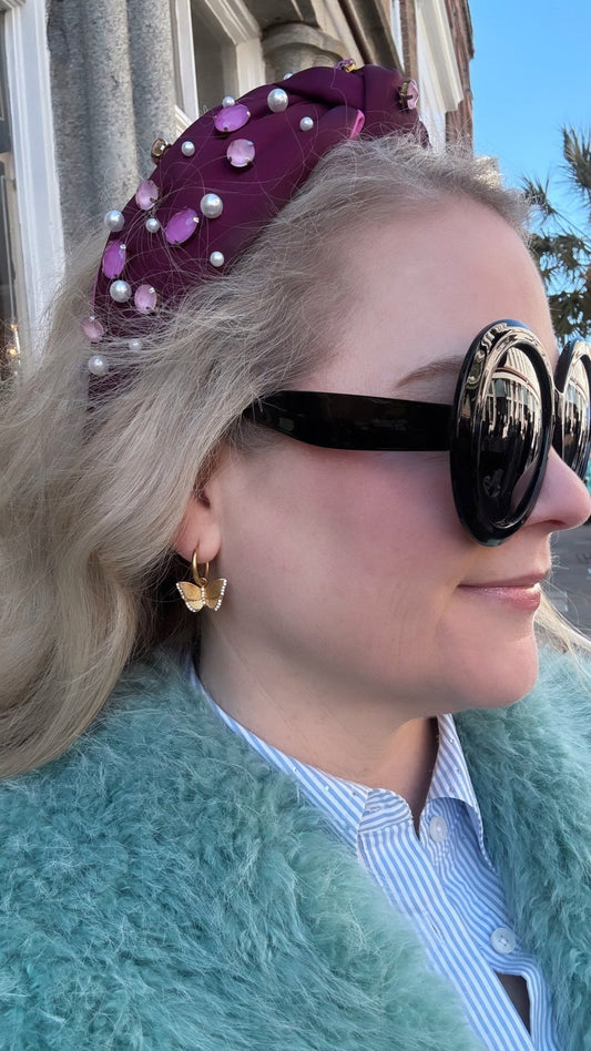 Bejeweled Tweed Tassel Pouch, Pale Pink