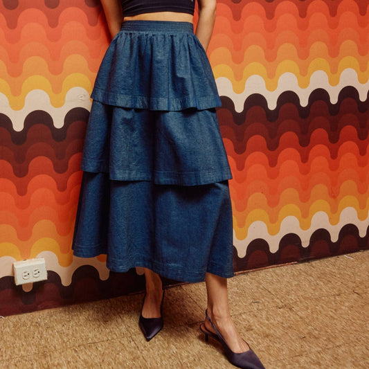 Sold outSydney Denim Tiered Midi Skirt