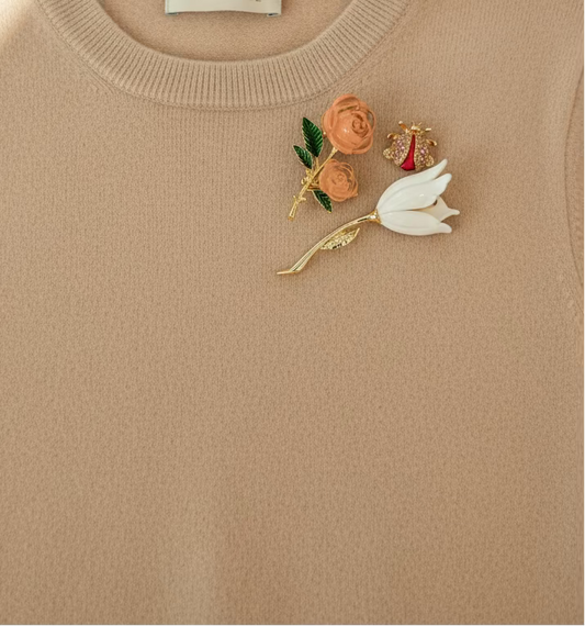 Spring Brooch Set - Rose, Tulip & Bee Enamel Pins (3 Pieces)