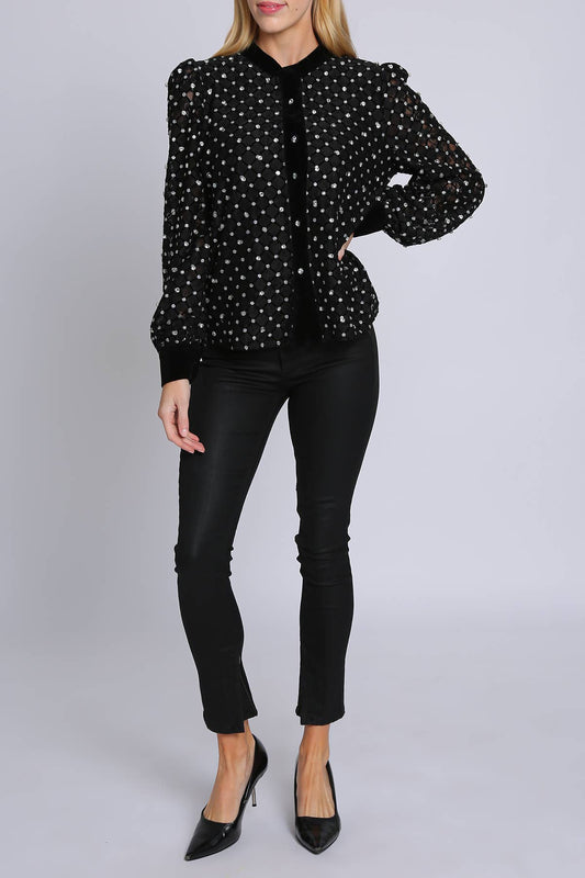 Olivia Velvet Trimmed Rhinestone Blouse