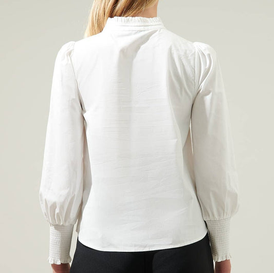 Kate Ruffle Button Down Blouse, White